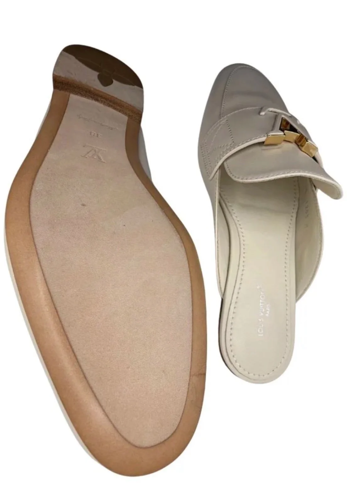 The cream Louis Vuitton open-back loafer is a sophisticated essential designed for effortless elegance. Crafted from smooth calf leather in a soft neutral tone, making it perfect to transition seamlessly from work to weekend. Equal parts polished and practical, this timeless designer loafer is a versatile staple for a modern luxury wardrobe.